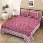 100% Pure Cotton Traditional Printed Bedsheet for Double Bed King Size Bedsheet with 2 Pillow Covers